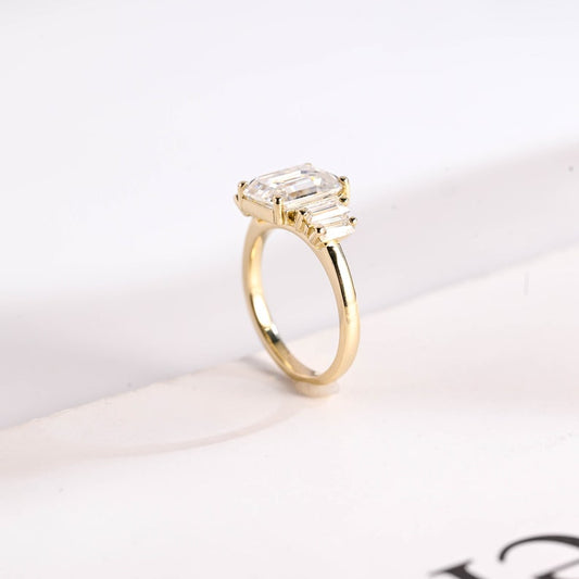 2.0 CT East West Emerald Bezel Lab Grown Diamond Engagement Ring