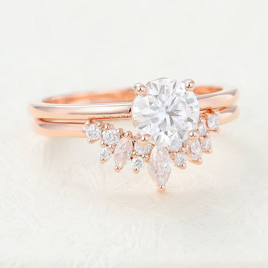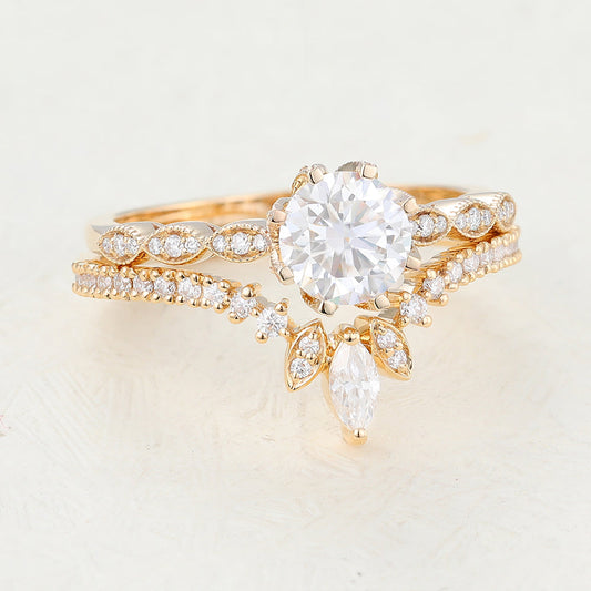 1 CT Round Vintage Lab Grown Diamond Bridal Set