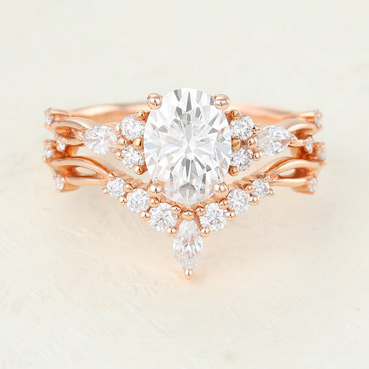 1.33 CT Oval Cluster & Split Shank Lab Grown Diamond Bridal Set